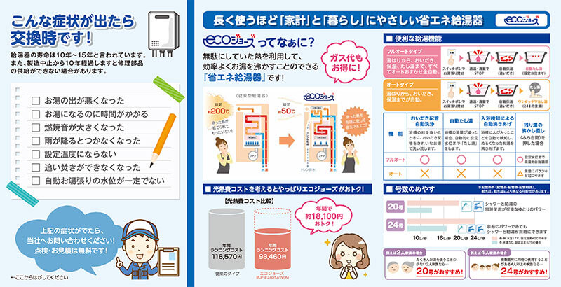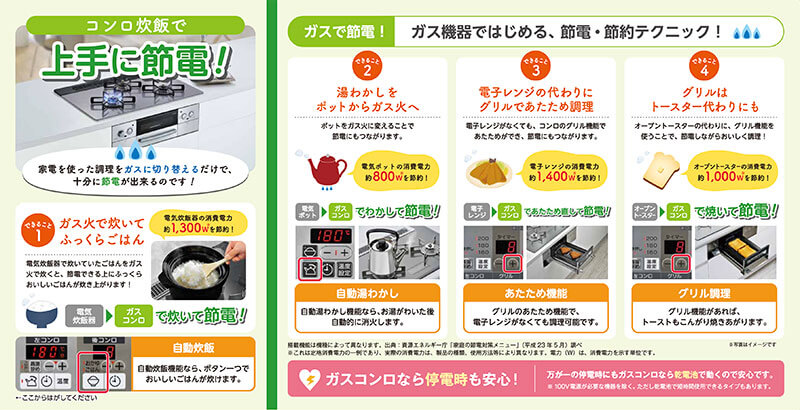 法で定められた案内に加えて「広告掲載による購買誘導」や「ガスを安全・安心にお使いいただくための内容」を掲載し、啓蒙・啓発を行います。